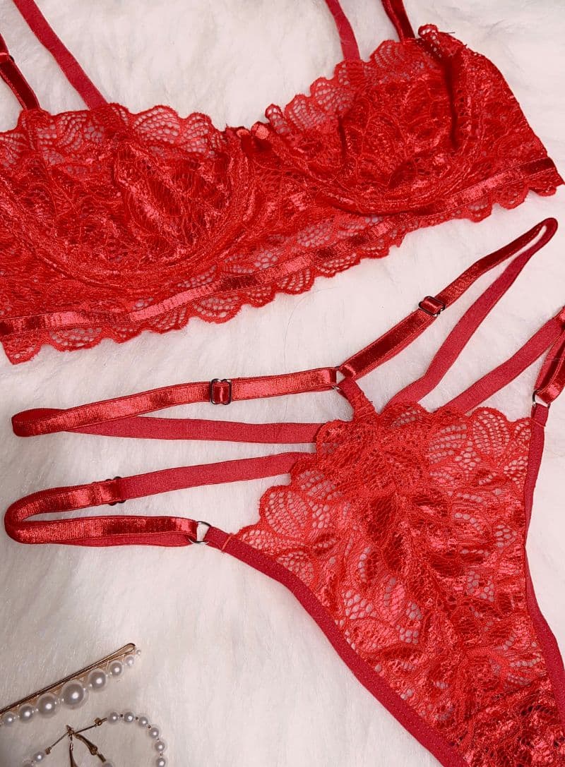 Set elaborado en encaje licrado, elástico y herrajes, la tanga y tiras de cargadera son graduables; esto permite que lo ajustes perfectamente a la forma de tu cuerpo, de esta manera te sentirás más cómoda y confiada.